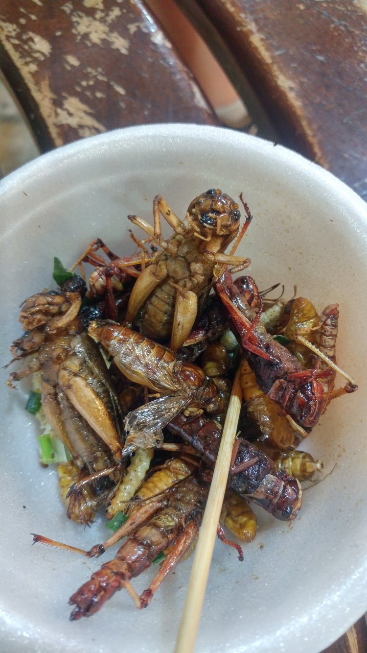 Usually (as they told me) the people who eat insects in Thailand are people from small villages and provinces outside Bangkok and people in the city sees eating insects as something very gross and strange as it is in Mexico.